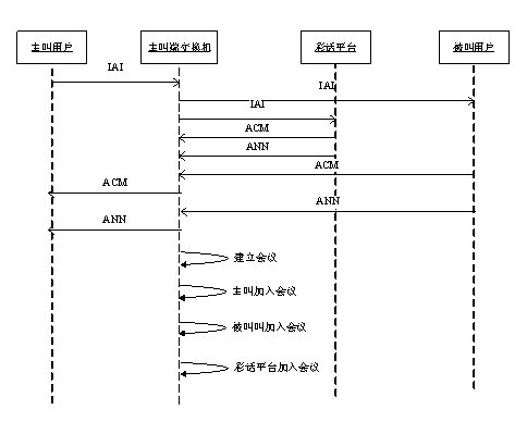 步驟6:彩話平臺產(chǎn)生會議,將主叫、被叫和彩話音樂加入到會議中。