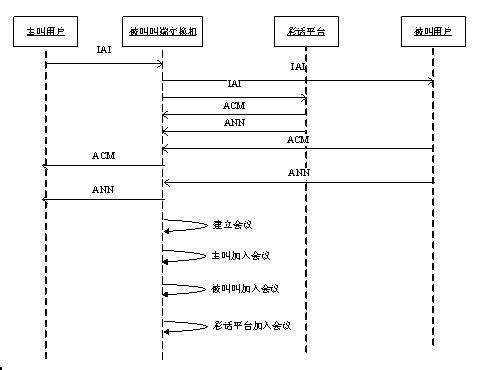 步驟6:主叫用戶端交換機(jī)產(chǎn)生會議,將主叫用戶、被叫用戶、彩話平臺加入到會議中