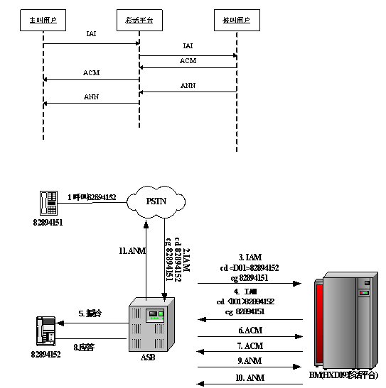 主叫定制彩話方式由電信運(yùn)營發(fā)起和控制。其實(shí)現(xiàn)過程為:主叫呼出時,主叫所在電信運(yùn)營交換機(jī)檢測主叫用戶是否設(shè)置了彩話業(yè)務(wù),如果沒有設(shè)置彩話業(yè)務(wù)則直接呼出;如果設(shè)置了彩話業(yè)務(wù),則經(jīng)過智能網(wǎng)業(yè)務(wù)處理(處理主被叫號碼)后,向彩話業(yè)務(wù)平臺發(fā)起呼叫,彩話平臺收到呼叫后,將發(fā)起到實(shí)際被叫的另外一個呼叫。
