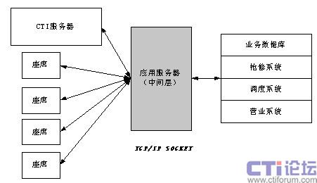數(shù)據(jù)接口采用三層C/S結(jié)構(gòu),通過構(gòu)建功能強大的應(yīng)用服務(wù)器,把呼叫中心的數(shù)據(jù)流與燃?xì)夤究蛻粝到y(tǒng)、營業(yè)系統(tǒng)、搶修系統(tǒng)和燃?xì)庹{(diào)度系統(tǒng)結(jié)合起來,充分利用了已有系統(tǒng)標(biāo)準(zhǔn)的數(shù)據(jù)接口,實現(xiàn)對后臺數(shù)據(jù)庫的訪問。如圖2