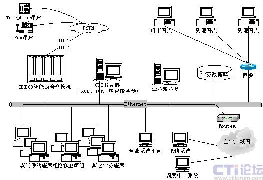 呼叫中心系統(tǒng)的網絡拓撲結構如下圖所示: