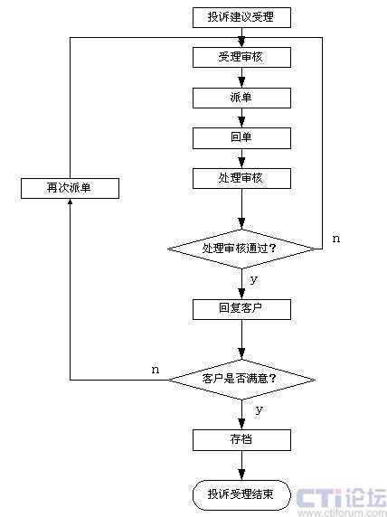 話務員確認投訴和建議后由復審員再次確認分析,然后把用戶的各種意見和合理化建議轉相關部門處理,對呼叫中心本身的投訴則轉班長席處理。投訴受理系統(tǒng)可以設置處理部門和處理時限,完成告警輸出和各種統(tǒng)計分析工作,投訴和建議的處理結果可以根據需要采用人工、自動、傳真、短信的形式反饋到用戶以提高用戶對服務的滿意度。