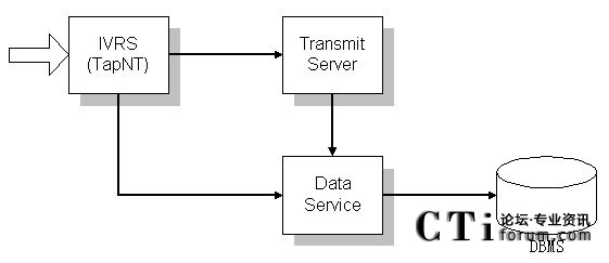 后臺程序使用Data Service 作為數(shù)據(jù)庫中間插件,TapNt(IVR)負(fù)責(zé)運(yùn)行流程。TapNt(IVR)查詢數(shù)據(jù)要通過Data Service來進(jìn)行。這項(xiàng)設(shè)置的目的在于使數(shù)據(jù)插件得到充分利用。當(dāng)話務(wù)量增多時,可以多開幾個Data