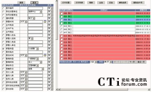 查詢:在要查詢的字段上打勾,輸入要查詢字段的信息及各條件間關(guān)系,點擊“查詢”按鈕,則在屏幕右側(cè)顯示相應(yīng)的查詢結(jié)果,可以對這些查詢結(jié)果進(jìn)行維護(hù),查詢條件可自由定制。