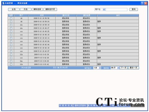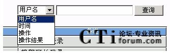 查詢:可以根據(jù)用戶名、時間、操作和操作結(jié)果為條件進(jìn)行查詢,先選擇要查詢的字段,然后輸入查詢條件,點擊“查詢”按鈕查詢需要的結(jié)果。