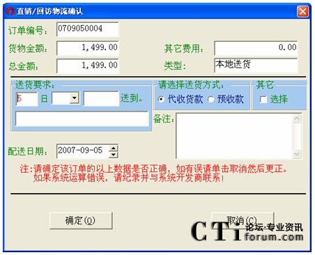 銷售人員(直銷部、市場部、回訪部)開據(jù)銷售訂單后,系統(tǒng)并不馬上提交物流部,必須進行物流確認后,系統(tǒng)自動將該訂單提交給物流部。物流確認后的訂單將不能進行任何修改。
