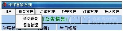 有錄音、監(jiān)聽、發(fā)送傳真、接收傳真、語音識別(ASR)等功能,處理話路與人工坐席的連接、來話轉(zhuǎn)移、保留、坐席呼出等功能,用戶與人工坐席的通話過程可實現(xiàn)全程錄音。