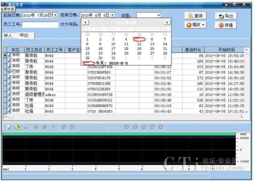 通過電話錄音監(jiān)聽系統(tǒng),對所有來話進(jìn)行全程錄音,從而達(dá)到質(zhì)量監(jiān)督和防范糾紛的功能,并可以通過錄音系統(tǒng)讓優(yōu)秀服務(wù)代表的錄音實例成為案例學(xué)習(xí)的典范,同時,通過錄音系統(tǒng),還可實時監(jiān)聽服務(wù)代表的通話。