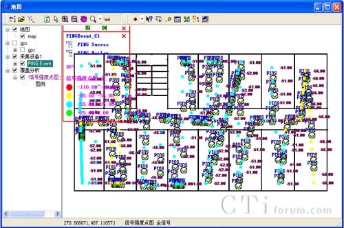 可以顯示GPS軌跡圖上的信號(hào)強(qiáng)度,載干比等參數(shù)覆蓋點(diǎn)圖及效果圖。