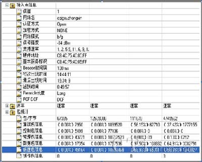 主要測(cè)試指標(biāo)有:信號(hào)強(qiáng)度,噪聲,信噪比,載干比,支持速率,MAC地址,認(rèn)證及加密方式,Beacon幀間隔,Preamble長(zhǎng)度類型,PCF/DCF,SSID,占用信道等。