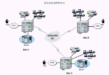在多點分布式呼叫中心中,要求CTI能夠?qū)崿F(xiàn)統(tǒng)一呼叫管理和統(tǒng)一路由管理功能。