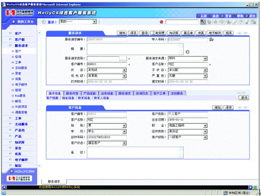 | 自動(dòng)保存:服務(wù)請(qǐng)求受理后,系統(tǒng)自動(dòng)關(guān)聯(lián)客戶,保存每份服務(wù)請(qǐng)求,支持事后針對(duì)客戶進(jìn)行服務(wù)痕跡的查詢。 |