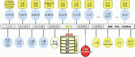 建立在ODS基礎(chǔ)上的ODS+EAI框架為整個公共安全應(yīng)急指揮系統(tǒng)提供基礎(chǔ)架構(gòu),通過該框架不僅可以交換并緩存數(shù)據(jù)信息,同時可以交換和記錄調(diào)度命令,通過數(shù)據(jù)采集構(gòu)建信息數(shù)據(jù)基礎(chǔ),記錄并歸檔事件處理過程,維護(hù)和利用預(yù)案處理過程。同時該框架也為我們建議的本地或遠(yuǎn)程OEM系統(tǒng)、甚至是移動的OEM系統(tǒng)提供有力的技術(shù)和數(shù)據(jù)支撐。