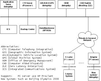 結(jié)合HP公司在全球范圍內(nèi)911應(yīng)急系統(tǒng)和安全領(lǐng)域的建設(shè)經(jīng)驗和案例,HP公司針對國內(nèi)對公共安全建設(shè)的需求,提供了公共安全系統(tǒng)的建設(shè)架構(gòu)和解決方案