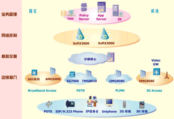 核心承載網(wǎng)采用高速包交換網(wǎng)絡(luò),可實(shí)現(xiàn)電信網(wǎng)、計(jì)算機(jī)網(wǎng)和有線電視網(wǎng)三網(wǎng)融合,同時(shí)支持語(yǔ)音、數(shù)據(jù)、視頻等業(yè)務(wù)。