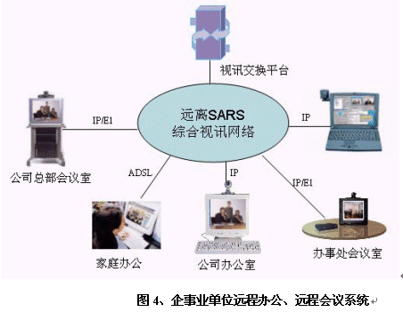 非典型肺炎不但對(duì)國家的經(jīng)濟(jì)造成了重大的損失,而且使得全社會(huì)對(duì)"非典"噤若寒蟬,大家對(duì)出差甚至外出都異常緊張。華為公司提供為個(gè)人家庭辦公、探親訪友的遠(yuǎn)程多媒體通信解決方案,大家在家里即可通過網(wǎng)絡(luò)和親朋好友"面對(duì)面"交流、在家中辦公。減少外出、遠(yuǎn)離人員眾多地區(qū),有效預(yù)防非典。對(duì)于有條件的用戶群可以推薦在現(xiàn)有寬帶線路或新增寬帶線路上購買軟件,即可實(shí)現(xiàn)親朋好友間的個(gè)人視頻通信;對(duì)于暫不具備寬帶條件的群體,如學(xué)生等,可以考慮在重點(diǎn)營(yíng)業(yè)廳設(shè)立專門會(huì)議室或者視訊公話亭等,提供預(yù)約視頻服務(wù),滿足其溝通的需求。