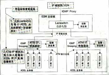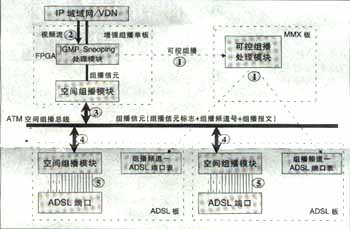 可實(shí)現(xiàn)高效的兩級組播。基于空間總線上的組播信元技術(shù)實(shí)現(xiàn),與組播用戶數(shù)無關(guān),同一節(jié)目即使所有用戶加入該頻道,僅需復(fù)制一份,不用逐個用戶復(fù)制到每個用戶端口,極大節(jié)省了背板帶寬,減輕IP上行負(fù)擔(dān)。可實(shí)現(xiàn)高性能硬件組播轉(zhuǎn)發(fā)。IP上行板采用超大規(guī)模FPGA硬件邏輯處理組播報(bào)文,ADSL板采用空間組播處理硬件芯片自動完成向每個ADSL端口(用戶)的組播復(fù)制,每ADSL端口組播帶寬6M。