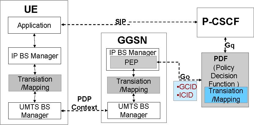 。3)PDF對(duì)IP流進(jìn)行記錄(包括流標(biāo)識(shí)符(GCID)、數(shù)據(jù)速率、QoS類別等)并授權(quán)。通過SDP參數(shù)映射到所授權(quán)的IPQoS參數(shù)而實(shí)現(xiàn),并通過GO接口(COPS協(xié)議)傳送到GGSN。