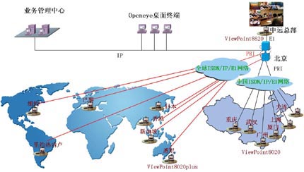 中國遠(yuǎn)洋(集團(tuán))公司全球會議電視系統(tǒng)覆蓋全國13個(gè)分部和全球8個(gè)分公司,系統(tǒng)主會場在中遠(yuǎn)集團(tuán)公司總部。系統(tǒng)采用ISDN、E1、IP混合組網(wǎng),使用了一套ViewPoint 8620視訊交換平臺、20套ViewPoint8020plus視訊終端和3套Openeye桌面終端,實(shí)現(xiàn)了中遠(yuǎn)(集團(tuán))公司和全球所有分支機(jī)構(gòu)之間的遠(yuǎn)程會議和業(yè)務(wù)培訓(xùn)。