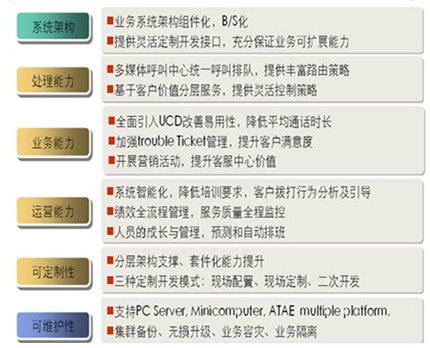 從服務內容來看,聯(lián)絡中心建立了一個統(tǒng)一面向客戶的綜合性服務平臺,實現(xiàn)涵蓋公司各項主要產品和業(yè)務的專業(yè)信息咨詢與交易功能,并實現(xiàn)人工服務、業(yè)務咨詢、業(yè)務處理、投訴處理、建議受理、預約服務、客戶回訪等一體化的話務處理與管理,為客戶提供多樣化、全方位、個性化的接入方式與服務內容。