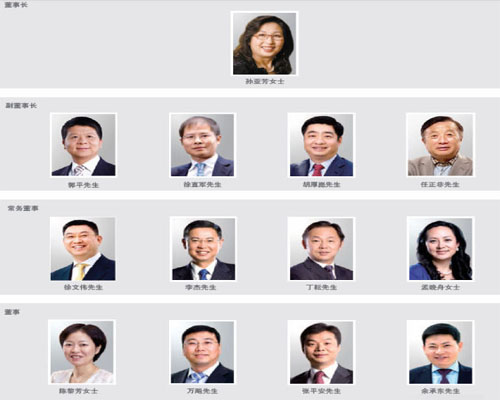 年報(bào)顯示,2010年底,華為全體持股員工投票選舉產(chǎn)生了51名持股員工代表,并由這51名持股員工代表于2011年1月選舉出新一屆的董事會和監(jiān)事會成員。新一屆董事會成員為孫亞芳、郭平、徐直軍、胡厚崑、任正非、徐文偉、李杰、丁耘、孟晚舟、陳黎芳、萬飚、張平安、余承東;監(jiān)事會成員為梁華、彭智平、任樹錄、田峰、鄧飚。這也是華為首次披露所有董事會、監(jiān)事會成員名單、簡歷和照片。