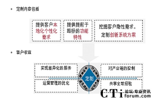 可定制服務(wù)主要體現(xiàn)在三個(gè)層面,一個(gè)是定制化服務(wù),通過全國10多個(gè)本地定制開發(fā)中心對客戶提供貼身二次開發(fā)服務(wù),支撐客戶更精細(xì)運(yùn)營其客服系統(tǒng),另一個(gè)是定制化路標(biāo),定制化創(chuàng)新系統(tǒng)方案,即通過華為MKT、行銷、開發(fā)部門對客戶價(jià)值需求的深度分析,將客戶需求去粗存精、去偽存真、由表及里、由此及彼“定制提煉”出來,成為我們產(chǎn)品和方案的路標(biāo)。