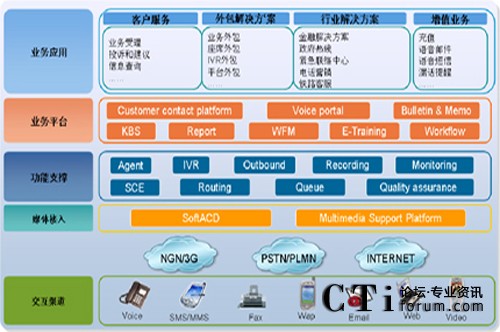 華為多媒體聯(lián)絡(luò)中心解決方案標(biāo)準版采用的是基于華為NGN架構(gòu)的下一代多媒體接入設(shè)備UAP3300,寬窄帶一體化設(shè)計,可接入PSTN/PLMN、NGN/3G網(wǎng)絡(luò),符合長期演進要求。單臺可支持240座席,在6U的高度內(nèi)內(nèi)置寬窄帶中繼接入和錄音、放音、傳真等媒體資源處理能力,無需外置媒體服務(wù)器和中繼網(wǎng)關(guān),并支持TTS和ASR功能。