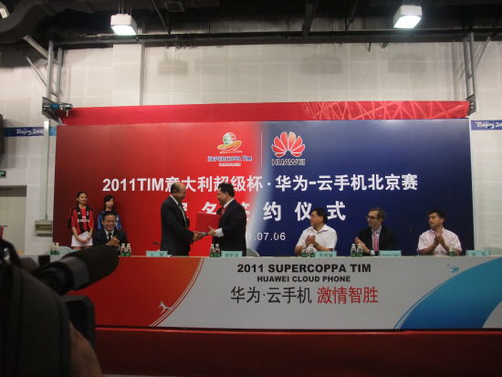 7月6日下午消息,今天,華為云手機(jī)在北京宣布將獨(dú)家冠名贊助2011年意大利足球超級(jí)杯北京賽,這是華為終端首次在全球贊助國(guó)際頂級(jí)賽事。