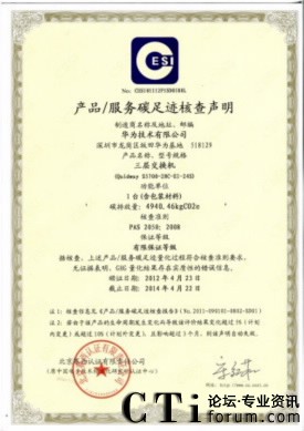 華為獲得國內(nèi)第一張交換機(jī)產(chǎn)品碳足跡認(rèn)證證書