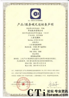 CTI論壇(ctiforum)5月23日消息(記者 楊佳林):全球領(lǐng)先的ICT解決方案供應(yīng)商華為宣布,華為S5700系列交換機(jī)產(chǎn)品(共4款,S5700-28-EI-24S、S5700-48TP-SI-AC、S5700-52C-EI、S5700-52C-SI)經(jīng)中國電子技術(shù)標(biāo)準(zhǔn)化研究所認(rèn)證中心(以下簡稱CESI)認(rèn)證核查,產(chǎn)品碳足跡量化過程符合核查準(zhǔn)則要求,獲得“碳足跡認(rèn)證”證書。這是國內(nèi)第一張交換機(jī)產(chǎn)品碳足跡認(rèn)證證書,10日在深圳舉行的“2012中國碳排放認(rèn)證認(rèn)可技術(shù)國際論壇”上,主辦方CESI向華為授予了該證書。