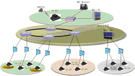 一般來說,在省公司同時參與會議的人數(shù)較多,考慮配置比較大的系統(tǒng),由某一領(lǐng)導(dǎo)召集一些相關(guān)成員在此開會;在地市公司同時參與會議的人數(shù)較少,只是一些主要領(lǐng)導(dǎo)參加會議,考慮配置比較小的系統(tǒng);同時,為了實現(xiàn)終端之間管理和傳送音頻、視頻和數(shù)據(jù),需要MCU來協(xié)調(diào)終端的工作,并與上級MCU相級聯(lián),擴大會議的規(guī)模。另外,可以增加一套T.120服務(wù)器,該系統(tǒng)是利用多媒體技術(shù)幫助使用者對工作中的各種信息進行處理,如共享數(shù)據(jù)、共享應(yīng)用程序、實現(xiàn)文件的雙向傳輸?shù),從而?gòu)造出一個多人共享的工作空間。以及增加一套VOD系統(tǒng),它集視頻采集、點播、廣播于一體,這樣就可以將視頻會議的內(nèi)容實時的錄制到本地,也可將一些培訓資料放在視頻點播里,便于對貴公司員工進行培訓,還能通過視頻廣播的功能,讓使用PC機的人員不在會議室,便可以通過瀏覽器實時的看到和聽到正在召開的會議。