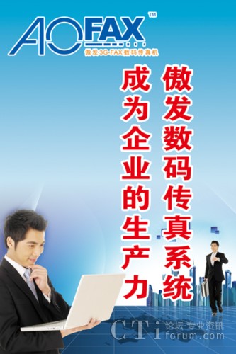 CTI論壇(ctiforum)4月24日消息(記者 歐陽): 經(jīng)濟發(fā)展外圍形式嚴(yán)峻,經(jīng)濟增速放緩,人工、生產(chǎn)成本高位運行,部分企業(yè)效益大幅降低。那么,中小企業(yè)如何提高自身的競爭力呢?作為企業(yè)辦公通信必不可少的設(shè)備,電子傳真機、數(shù)碼傳真機、無紙傳真機、網(wǎng)絡(luò)傳真機、電腦傳真機、傳真卡、傳真群發(fā)器、傳真服務(wù)器等新型電腦傳真系統(tǒng)的迅速熱銷,也能助企業(yè)一臂之力,由金恒科技(深圳)有限公司推出的傲發(fā)3G-FAX(AOFAX)系列電子傳真和傳真服務(wù)器產(chǎn)品是其中的佼佼者,占據(jù)著新型傳真市場的大半江山,受到廣大消費者的一致好評。