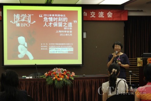 CTI論壇(ctiforum)6月3日消息(記者 張潔):2011年5月31日下午,上?茖W(xué)會(huì)堂思南樓九層賓客盈門(mén),勝友如云。易才博普奧“博學(xué)匯”系列活動(dòng)之四“危情時(shí)刻的人才保留之道”研討會(huì)在輕松愉悅的氛圍中拉開(kāi)帷幕。本屆“博學(xué)匯”以“人才保留”為主題,邀請(qǐng)了業(yè)內(nèi)權(quán)威專(zhuān)家及其資深從業(yè)者就人才保留這一話題展開(kāi)一系列探討。會(huì)上分別從學(xué)術(shù)觀點(diǎn)、呼叫中心、人力資源、服務(wù)外包等諸多領(lǐng)域來(lái)探討人才保留的種種新途徑、新方法。
