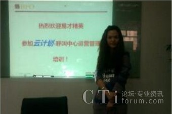 2012年3月16日作為“云計(jì)劃”第一期培訓(xùn)班在北京正式啟動(dòng),獲得了就職于各呼叫中心項(xiàng)目的易才博普奧一線坐席員工的廣泛關(guān)注和踴躍的報(bào)名。經(jīng)過(guò)“云計(jì)劃”入門(mén)培訓(xùn)資格的嚴(yán)格篩選,最終共有來(lái)自藝龍、樂(lè)淘、用友等項(xiàng)目的9名優(yōu)秀員工正式入圍,成為第一期“云計(jì)劃”成員。在今后的一段時(shí)間里同易才博普奧資深培訓(xùn)師一起學(xué)習(xí)一些列的專業(yè)課程,豐富自身在呼叫中心行業(yè)的專業(yè)知識(shí),并走上易才博普奧構(gòu)建的職業(yè)晉升通道!