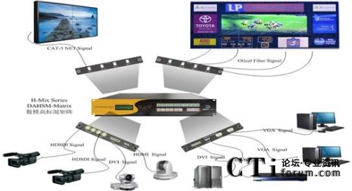 Kensence H-Mix系列產(chǎn)品專門為解決在視頻工程中遇到的諸多問題而設(shè)計,將數(shù)字視頻信號、模擬視頻信號、高清視頻信號和標(biāo)清視頻信號混為一體處理成高清720p@60Hz或1080p@60Hz信號的HDMI的高清數(shù)字信號通過網(wǎng)絡(luò)傳輸?shù)囊豢疃嗝襟w混合矩陣。Kensence H-Mix采用Silicon Image HDMI v1.3芯片,支持HDMI\DVI\3GSDI\HDSDI\SDI\VGA\YPbPr\CVBS信號的輸入和HDMI\DVI\CAT-5\光纖信號的輸出,可將VESA\CEA\HDTV各種不同分辨率的信號轉(zhuǎn)換為HDTV的高清視頻分辨率,并且可以通過普通五類雙絞線或多模光線進(jìn)行高清視頻的傳輸。Kensence H-Mix可以通過網(wǎng)絡(luò)、RS232、IR、軟件、前面板對系統(tǒng)進(jìn)行控制管理,采用插卡式設(shè)計可以任意進(jìn)行系統(tǒng)組合,方便靈活。模塊化雙電源冗余熱備份功能可以實(shí)現(xiàn)7日24小時連續(xù)開機(jī),保證系統(tǒng)安全可靠工作。