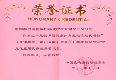 在本屆論壇上,由廈門(mén)天聰智能軟件有限公司與泉州移動(dòng)聯(lián)合研發(fā)成功的全國(guó)首創(chuàng)的聲紋識(shí)別親情電話(huà)系統(tǒng)(福建泉州市監(jiān)獄信息化項(xiàng)目)獲得“2010年中國(guó)通信與信息化應(yīng)用優(yōu)秀成果獎(jiǎng)”銀獎(jiǎng)。這一系統(tǒng)的研制成功,對(duì)司法系統(tǒng)的信息化建設(shè)與管理具有重大意義。