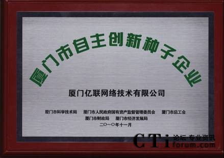 根據(jù)國(guó)家科技部、國(guó)務(wù)院國(guó)資委和全國(guó)總工會(huì)三部委制定的“創(chuàng)新型企業(yè)試點(diǎn)工作實(shí)施方案”和廈門市“技術(shù)創(chuàng)新引導(dǎo)工程實(shí)施方案”具體要求,市科技局、市國(guó)資委、市總工會(huì)、市財(cái)政局、市經(jīng)發(fā)局聯(lián)合開(kāi)展了2010年廈門市自主創(chuàng)新示范、試點(diǎn)、種子企業(yè)評(píng)選工作。經(jīng)專家評(píng)審和市五部門聯(lián)合審核后,廈門億聯(lián)網(wǎng)絡(luò)技術(shù)有限公司(以下簡(jiǎn)稱億聯(lián))憑借科技、環(huán)保的產(chǎn)品和強(qiáng)大的研發(fā)實(shí)力獲得了廈門市自主創(chuàng)新種子企業(yè)獎(jiǎng)。