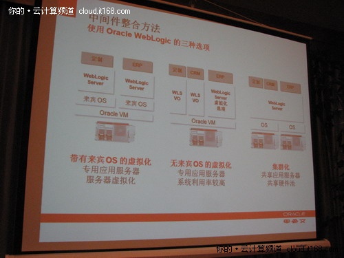 在此次溝通會(huì)上,喻思成重點(diǎn)介紹了甲骨文兩款重要產(chǎn)品,即數(shù)據(jù)庫云服務(wù)器和中間件云服務(wù)器,因?yàn)檫@是甲骨文最關(guān)注的私有 PaaS建設(shè)的基礎(chǔ),也是甲骨文收購(gòu)SUN后打造的軟硬件一體系統(tǒng)為甲骨文云計(jì)算系統(tǒng)帶來的核心競(jìng)爭(zhēng)力所在。
