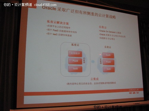 在媒體溝通會(huì)上,喻思成通過甲骨文圍繞私有云還是公有云,甲骨文關(guān)注IaaS、PaaS還是SaaS,甲骨文為云計(jì)算提供什么樣的產(chǎn)品以及這些產(chǎn)品的價(jià)值體現(xiàn)在哪里這些問題做了詳細(xì)介紹。