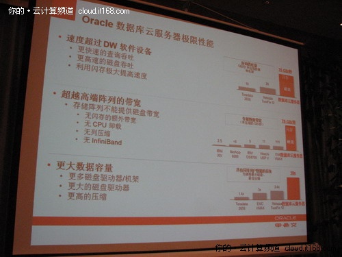 喻思成在介紹甲骨文在云計(jì)算產(chǎn)品的時(shí)候毫不掩飾對(duì)Oracle數(shù)據(jù)庫云服務(wù)器和Oracle中間件云服務(wù)器的贊譽(yù)。他說,甲骨文將這兩款產(chǎn)品稱之為“經(jīng)過預(yù)調(diào)測(cè)的系統(tǒng)”。它們均由硬件和軟件組成,硬件和軟件能以一種優(yōu)化的方式協(xié)調(diào)一致地運(yùn)行,并以一種預(yù)集成的工作狀態(tài)提供給客戶,因此具有極高的性能和效率,是數(shù)據(jù)庫的理想目標(biāo)平臺(tái),也是在中間層合并幾十或數(shù)百個(gè)應(yīng)用的理想目標(biāo)平臺(tái)。由于它們都是由甲骨文預(yù)集成和預(yù)配置的,因此也簡(jiǎn)化了部署,能減少總的硬件量并降低環(huán)境復(fù)雜性,因此對(duì)客戶而言,其總體擁有成本更低。