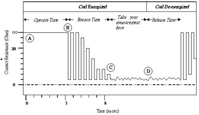 1) Operate Time:驅(qū)動電路推動繼電器直至開關第一次閉合的時間,為A-B區(qū)段。