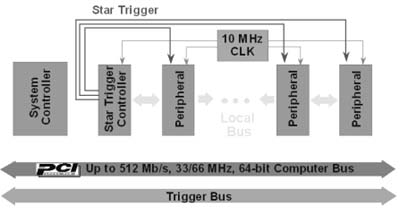 for Instrumentation,其結(jié)合了開放而高效能的PCI總線、CompactPCI強健的結(jié)構(gòu)性能,及VXI系統(tǒng)專為量測所設計的同步、觸發(fā)信號群。圖