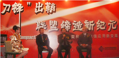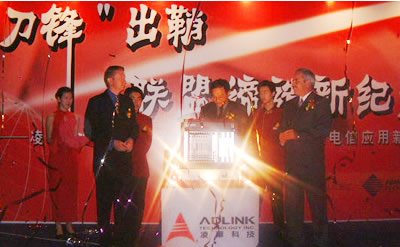 2002年9月19日,凌華科技于北京長(zhǎng)城飯店舉辦“刀鋒出鞘、聯(lián)盟締造新紀(jì)元” 新聞發(fā)布會(huì),記者會(huì)中凌華科技除宣布與國(guó)際電信設(shè)備知名廠商Interphase、Performance Technologies策略聯(lián)盟外,凌華亦發(fā)表全世界速度最快的PICMG2.16電信級(jí)刀鋒服務(wù)器,透過(guò)相互的搭配合作,將針對(duì)客戶提供電信暨網(wǎng)絡(luò)應(yīng)用領(lǐng)域之完整解決方案。凌華科技董事長(zhǎng)劉鈞先生、Interphase區(qū)域負(fù)責(zé)人Mr. Antony Chapman、Performance Technologies行銷(xiāo)業(yè)務(wù)副總Mr. Martin McFadden、中國(guó)工控領(lǐng)域?qū)<彝瑫r(shí)亦是PICMG中國(guó)協(xié)會(huì)會(huì)長(zhǎng)魏慶福教授、以及北京郵電大學(xué)宋俊德教授皆共襄盛舉,出席此次成功的記者發(fā)布會(huì)。