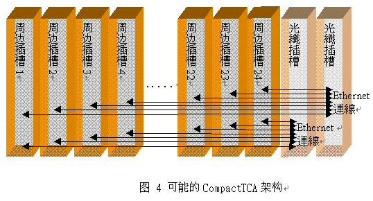 系統(tǒng)所使用的電路板成本、降低提供備援系統(tǒng)插槽(system slot)的復(fù)雜性,以及增加插槽總數(shù)。圖4顯示可能的CompactTCA系統(tǒng)范例。