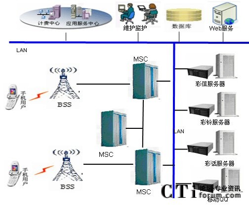 下圖是研祥智能科技股份有限公司采用CompactPCI計(jì)算機(jī)硬件平臺(tái)提供的電信增值業(yè)務(wù)解決方案從方框圖:電信用戶(hù)通過(guò)交換中心(MSC)向各個(gè)服務(wù)器(彩信、彩鈴、彩話、移動(dòng)QQ)提取信息,服務(wù)器由研祥CPCI產(chǎn)品構(gòu)成。主控業(yè)務(wù)邏輯運(yùn)行的功能實(shí)體,管理和控制平臺(tái)業(yè)務(wù)的運(yùn)行、對(duì)業(yè)務(wù)腳本進(jìn)行管理并對(duì)業(yè)務(wù)進(jìn)行監(jiān)控和統(tǒng)計(jì),同時(shí)計(jì)費(fèi)中心向用戶(hù)計(jì)費(fèi)。