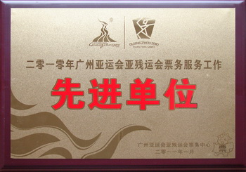 誠伯榮獲廣州亞運(yùn)會(huì)亞殘運(yùn)會(huì)票務(wù)中心“先進(jìn)單位”稱號