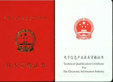 學(xué)員學(xué)完全部課程,并經(jīng)"基礎(chǔ)知識(shí)考試"和"行業(yè)技能交互式語音考核"后(兩項(xiàng)考核需全部通過),由"信息產(chǎn)業(yè)部電子行業(yè)職業(yè)技能鑒定指導(dǎo)中心"頒發(fā)全國通用的《中華人民共和國職業(yè)資格證書》以及信息產(chǎn)業(yè)部的《技術(shù)資格證書》。