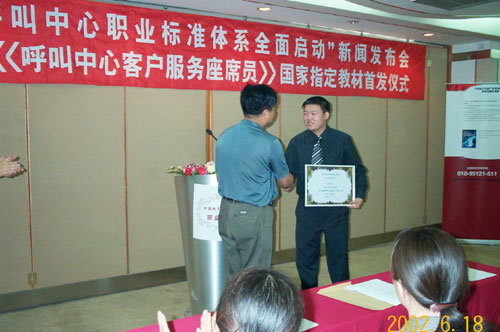 "呼叫中心職業(yè)標準體系全面啟動"新聞發(fā)布會,暨《呼叫中心客戶服務座席員》國家指定教材首發(fā)儀式于2002年6月18日在北京舉行。呼叫中心行業(yè)全面引入國家標準管理體系,全國范圍內(nèi)客戶服務代表將陸續(xù)持證上崗。
