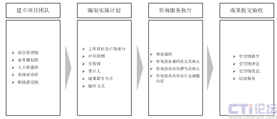 賽迪呼叫顧問咨詢項目團隊主要通過以下步驟來協(xié)助該銀行電子商務(wù)中心的建設(shè)工作順利完成。