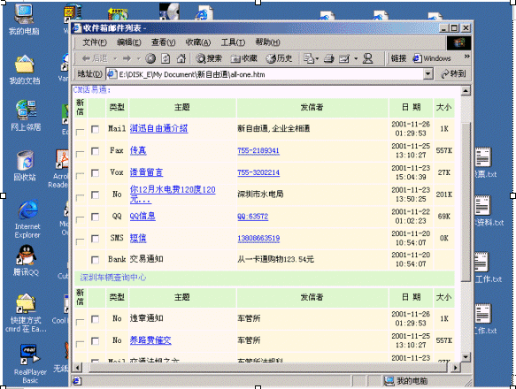傳統(tǒng)郵件系統(tǒng)作為信息交換的手段在PC后的互聯(lián)網(wǎng)絡(luò)時代廣為運(yùn)用,但是,郵件系統(tǒng)一個大的缺點是離不開電腦。CTI技術(shù)技術(shù)通過傳統(tǒng)的電話網(wǎng)絡(luò)傳遞語音信息。電話網(wǎng)具有廣泛普及,人人使用這一特點,這兩大技術(shù)的發(fā)展促使兩大技術(shù)的融合,那就是隨時隨地(anytime and anywhere)人們都可以通過電話,電腦使用郵件,訪問郵件。